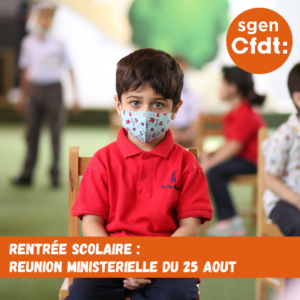Le mercredi 25 août 2021, le directeur de cabinet du ministère de l’Education nationale réunissait les syndicats représentatifs des personnels pour faire un point sur la situation sanitaire. Le Sgen-CFDT y a porté son avis sur les mesures prévues pour les rentrées mais aussi des revendications.