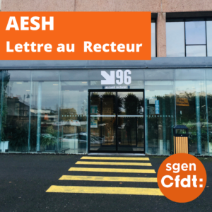 Merci à toutes celles et tous ceux qui ont pris du temps pour remplir notre enquête AESH de décembre. A partir de vos réponses, ce 21 janvier, le Sgen-CFDT interpelle l’ensemble des Rectrices et Recteurs d’académie, ainsi que le ministre de l’Éducation Nationale.